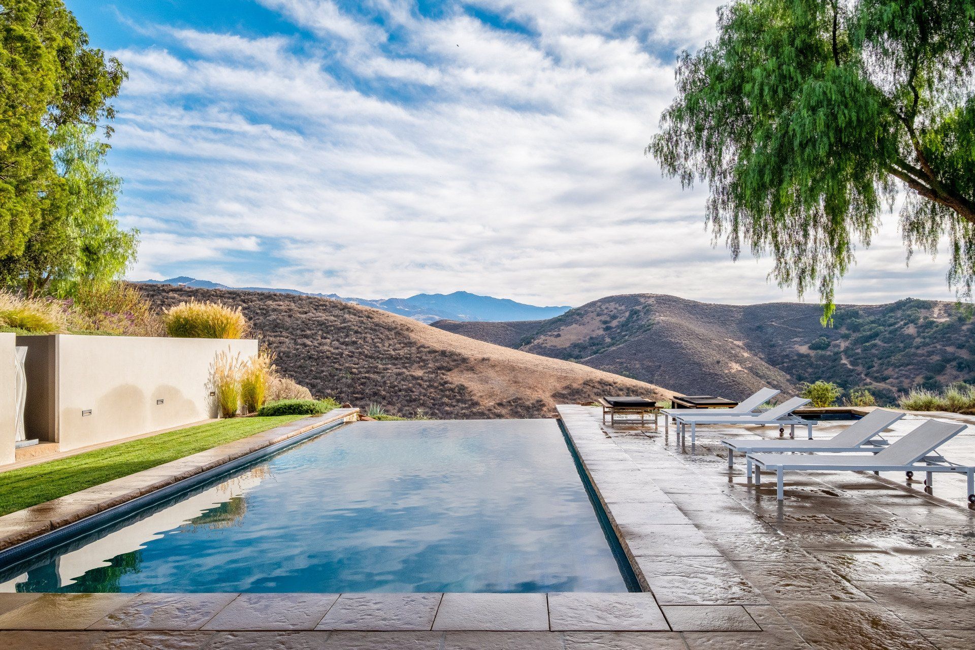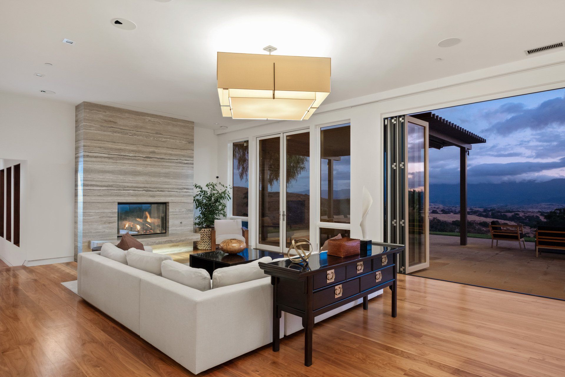 Description: A complete rebuild with a new vision for this owner. Truly one of the most extraordinary, contemporary estates in the Santa Ynez Valley. Atop a lush hilltop, this masterpiece exemplifies the epitome of style and taste for the most discrete owner. The magnificent kitchen is equipped to gourmet standards. Wolf range and double ovens, Miele wine glass dishwasher as well as a Miele standard dishwasher, two Sub Zero wine refrigerators. Lutron Homeworks will allow you to run your entire home from your phone. With the touch of a button the TV will drop from above the beautiful, Italian travertine fireplace. The ground-level, soundproofed Master Suite boasts expansive views and outside access. Gorgeous walnut flooring. Insulated interior walls. La Cantina wall doors. Automated window coverings. Toto toilets. Automated Velux skylights. Distinctive framing art lighting.